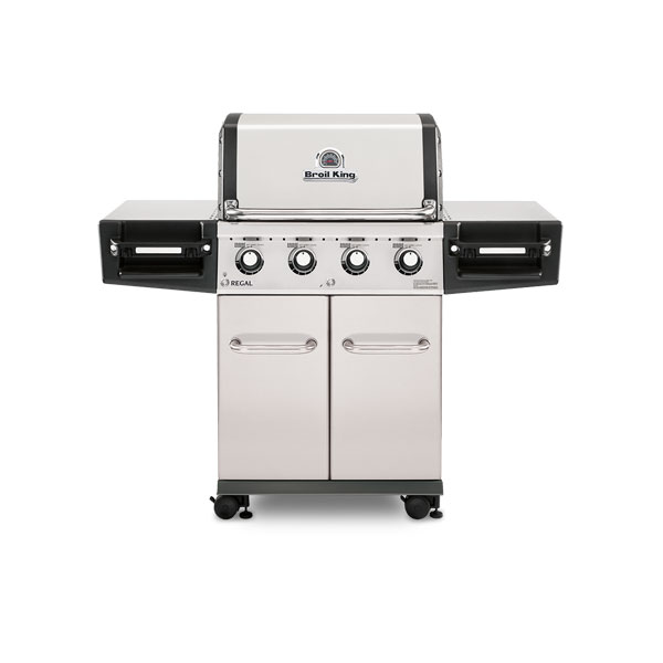 The Regal™ S420 Pro features 695 sq. in. total cooking space including porcelain coated warming rack, solid 9mm stainless steel cooking grids, stainless steel Flav-R-Wave™ cooking system, 4 stainless steel Dual-Tube™ burners, stainless steel side shelves, illuminated control knobs and an enclosed cabinet base.