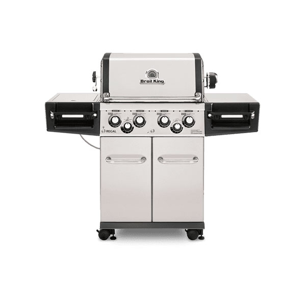 The Regal™ S490 Pro features 695 sq. in. total cooking space including porcelain coated warming rack, solid 9mm stainless steel cooking grids, stainless steel Flav-R-Wave™ cooking system, 4 stainless steel Dual-Tube™ burners, stainless steel side shelves, illuminated control knobs and an enclosed cabinet base.