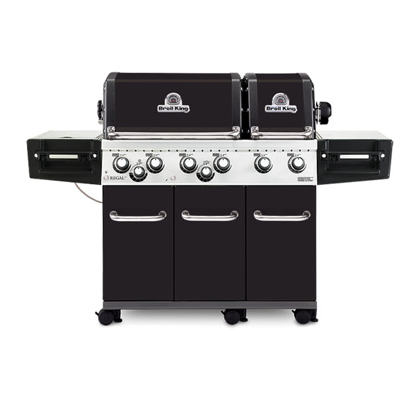 The Regal™ XL Pro features two totally independent ovens with a total of 1000 sq. in. of cooking space including two porcelain coated warming racks, 4 solid 9mm stainless steel cooking grids, 2 reversible heavy-duty cast iron cooking grids, stainless steel Flav-R-Wave™ cooking system, 6 stainless steel Dual-Tube™ burners, stainless steel side shelves, an enclosed cabinet base and built-in control knob lights.