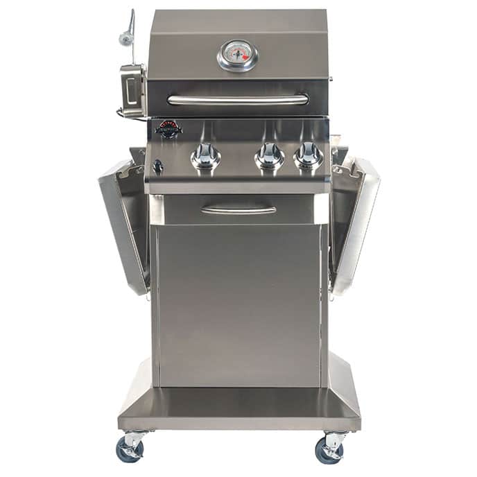 The Lux 400 Cart Model; a full sized grill in a compact package; perfect for singles, couples and today’s smaller families. Grill the perfect steak; roast a chicken to perfection on the infrared rotisserie. With a total grilling surface of 370 square inches (Primary: 268 sq. in. Secondary: 102 sq. in.), the Lux 400 offers the perfect balance between performance and flexibility. Ideal for smaller patios and decks.